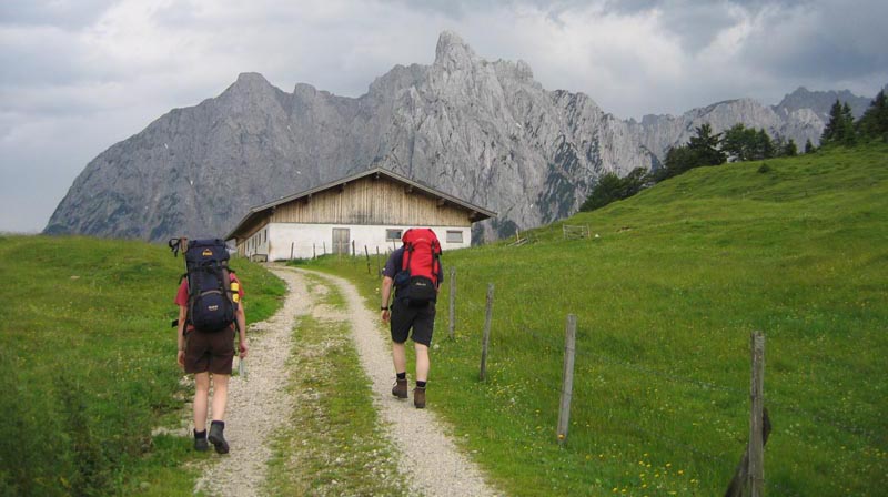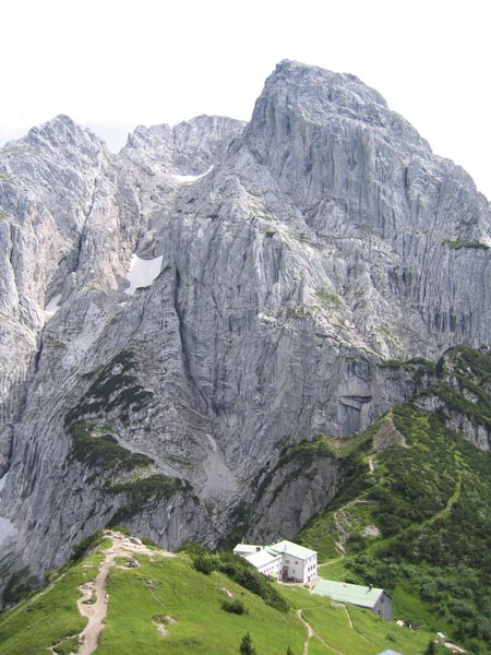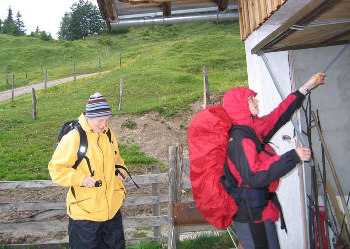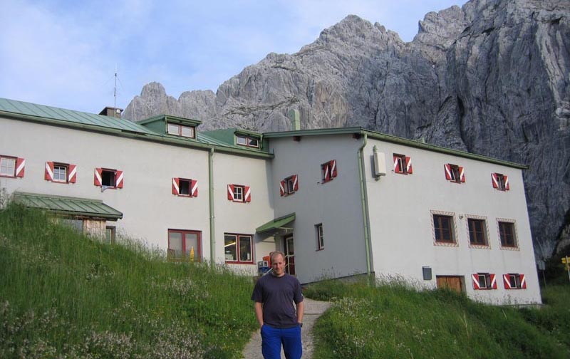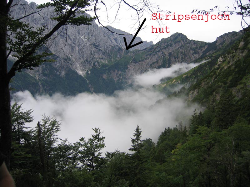 after 6 hours of hiking, the stripsenjoch hut on 1605m