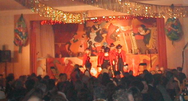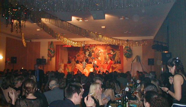 A few of you guys don't have a clue what carnival is. Well, you have perhaps heard about Carnival de Rio, but this is a total different thing than the german carnival (not such awesome looking girls :-), just kidding, we have also nice girls). The original meaning of carnival is to drive out the winter devil and the ghosts (guys from NZ, we had just winter and we still have it). So everybody gets dressed up with a real costume. I was once Pipi Langstrumpf (the girl who could jerk a horse and had long red queues). The people go out on the roads and have parades. Yesterday was more a show than a parade. We sat in a hall and listened to funny speeches (some wouldn't say that) about politics. There were also some dancing shows (with nice girls) and other stuff going on. After that we danced in the sparkling wine bar. I met a lot of old friends, I haven't seen them for ages, some for over 4 years. Allover it was an awesome evening.