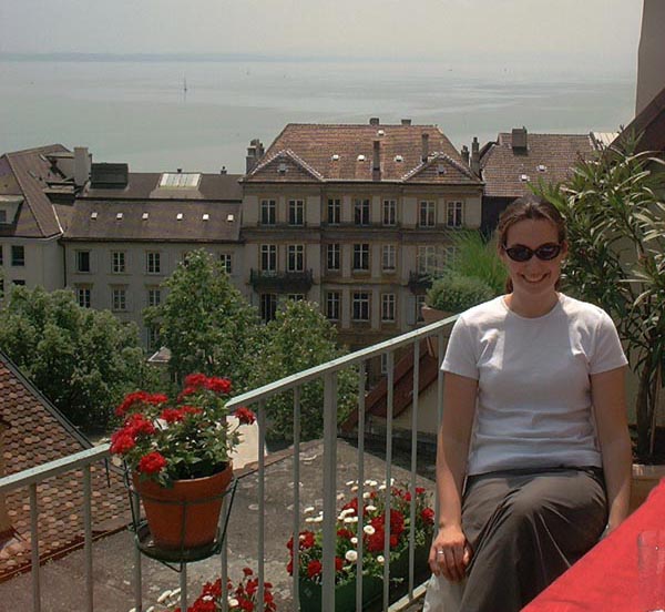 Petra on the balcony in front of the lake Cathel