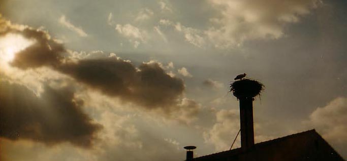 a stork on the roof