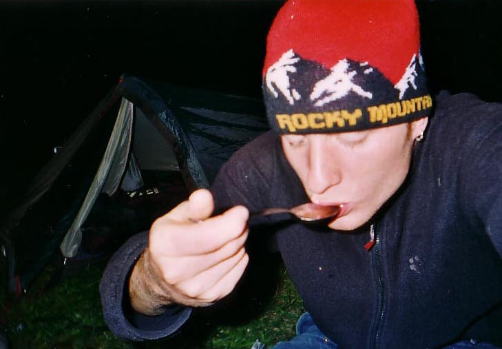 having dinner infront of my tent