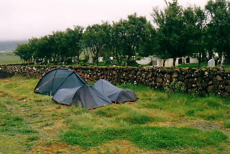 Our aim was Selfoss. Due to the fact that the weather was really crazy we decided to look for a camping ground. We couldn't find one and so we asked the neighbors of a church if we could sleep next to it on the yard. Further more we used the graveyard house.