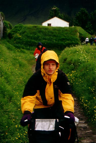 After 35 km we reached Nupssadtur (another tongue breaker). This is a small village with old typical buildings from the last century. The only house which you could go in was the church, the others were private. It was really cold and so we decided to go in and have some cookies (normally we wouldn't eat in a church, but it was really necessary). The church was small but quite nice.