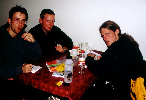 Just before Skaftafell (10 km's) a really strong rain started. We got wet. When we reached Skaftafell we weren't happy. Some even thought about going back to home with the airplane.