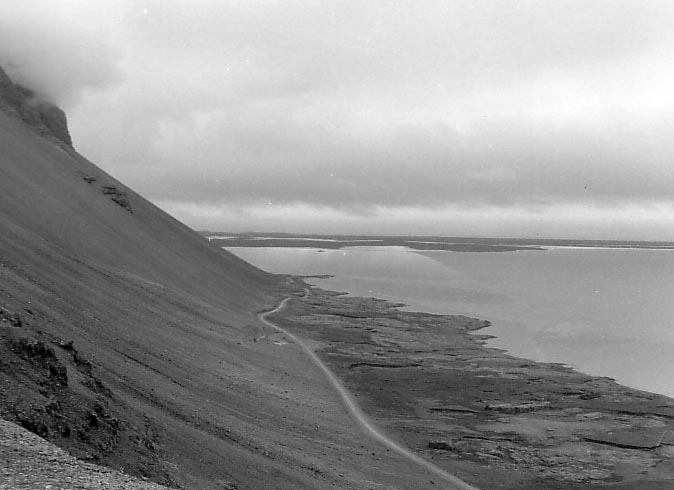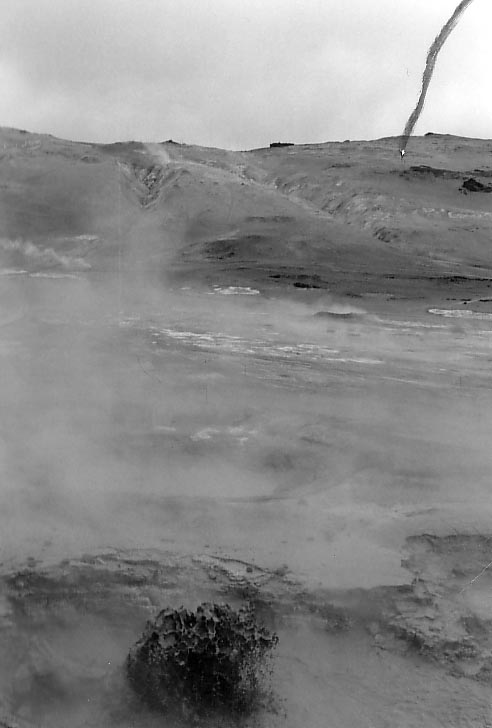 The next 80 km's were really hard. It became late and boring. Furthermore I was a little bit afraid being alone out in the desert (well, there are no lions but you never know). Finally I arrived in Reykjahildt at Myvatn. Myvatn is an geothermal active area, a lot of stuff to see (see the next days). Timo and Martin Wensel (this two guys tried to hitch hike) didn't arrived there, that was a little bit scary, Martin D. arrived 2 hours before me.