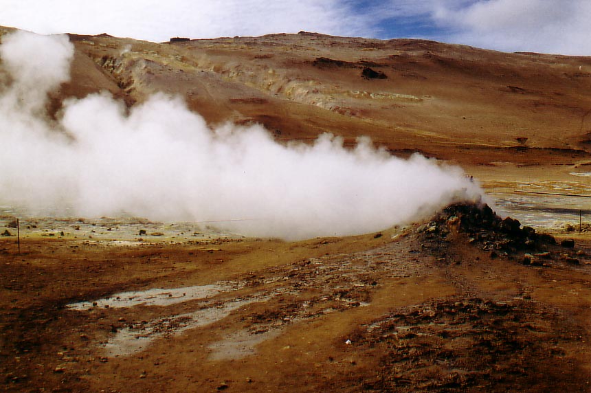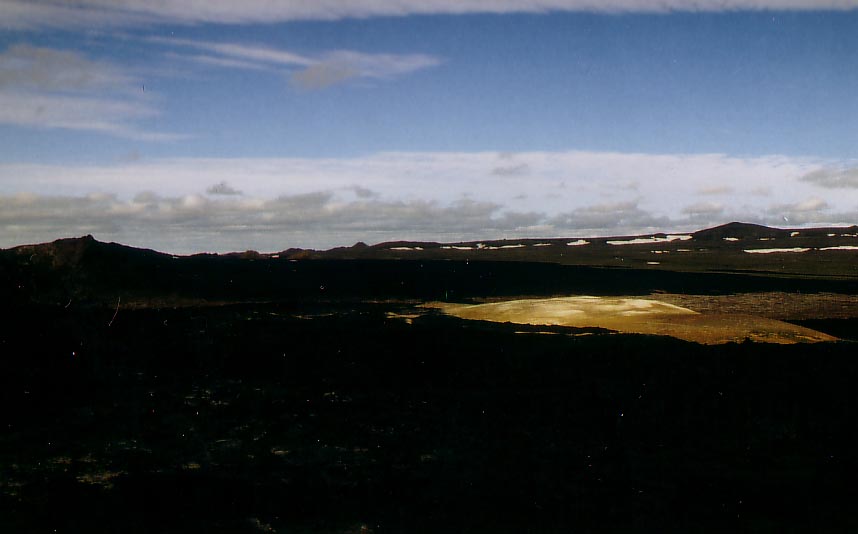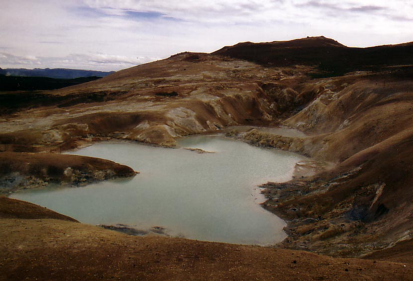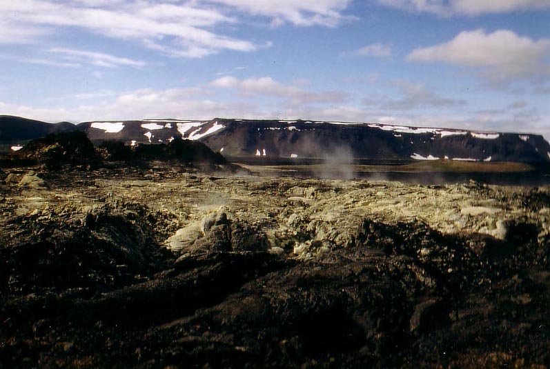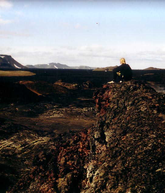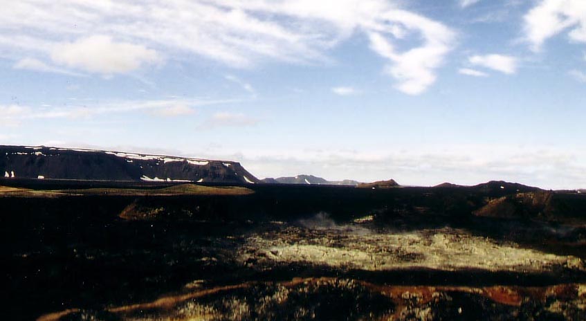 After we walked around in that brimstone field we biked to Krafla. Krafla is a volcano area which erupted the last time less than 15 years ago. It is not a typical volcano area with a huge crater, it is a wide spread area. The lava flow about 10 km's, there is not a huge mountain or something like that. The amazing thing is the color of the congealed lava and the temperature. The volcano erupted 10 years ago but the congealed lava is still warm if you remove the first layer of 10 cm.