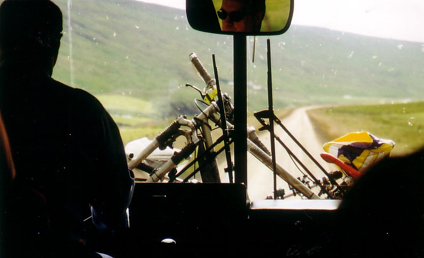 The wind strength hasn't changed. We discussed if we should wait or get the bus. Well, if we would wait we had to wait a least one day and couldn't do anything. The bus is running only once a day. The decision was easy. We caught the bus. The track wasn't asphalt, it crossed iceland right in the middle.