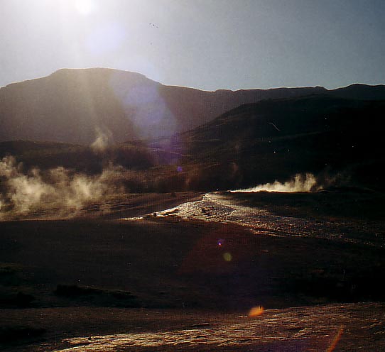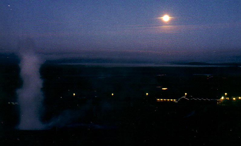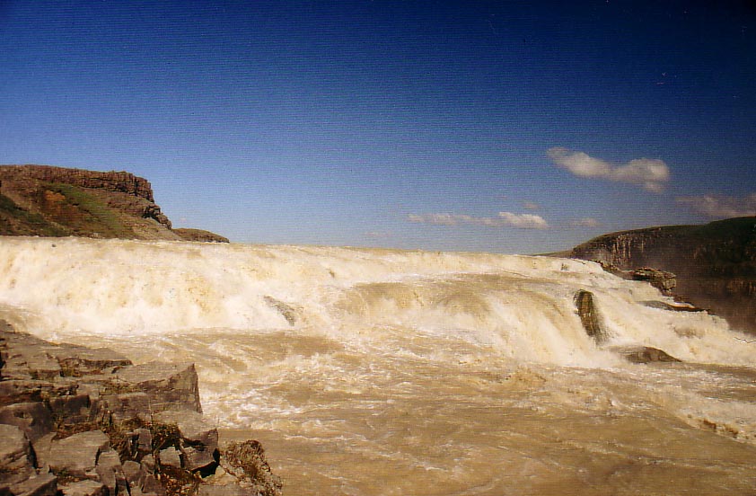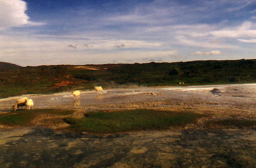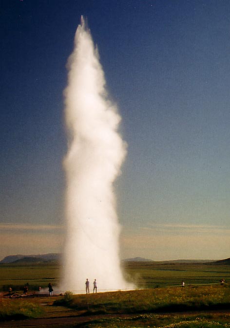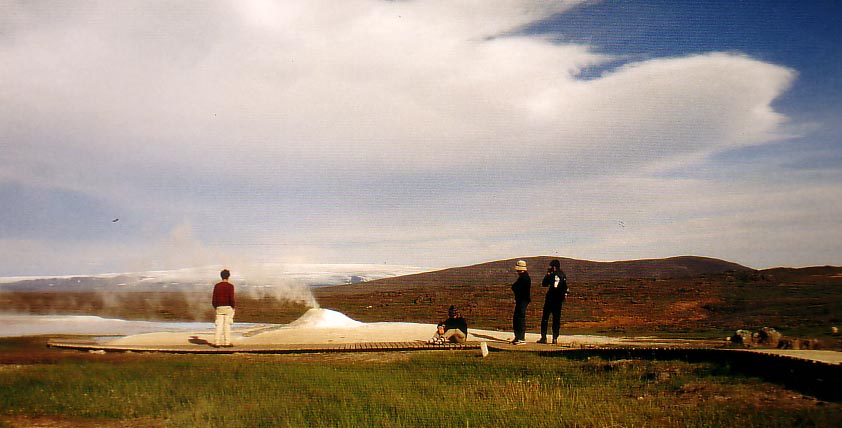 We jumped into the bus and drove towards Gysir. That was the next rucktion this day. For those who don't know what a Gysir is. It is a big water fountain. The material beneath the bottom is so hot that the water is heated up. Every 15 min. (that depends on the Gysir) the water is boiling. The pressure inside (there is a small room where all the water is collected) is too high and so you have a fountain which is about 25 m high (you can see it on the left side of the sign).