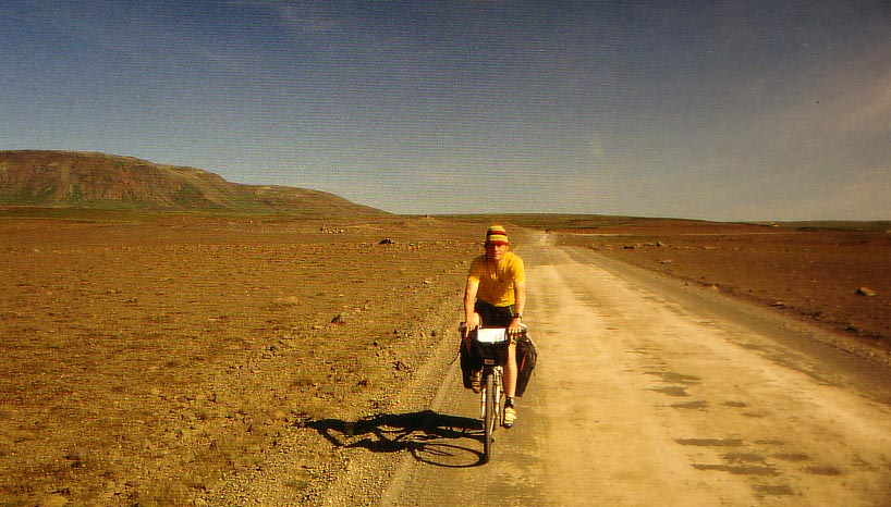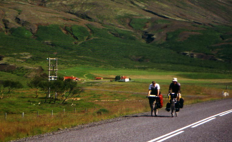The sun was shining and we had a good breakfast outside. We left Gysir and rode on our bikes towards Reykjavik. It was really warm and so we could wear only short cloths. After 25 km's we reached Laugavatn, that is a small holiday town (I guess a lot of people from Reykjavik do have a holiday house there). We went to the supermarket and got some food. A bit outside of Laugavatn we lay down on a meadow and enjoyed the sun.