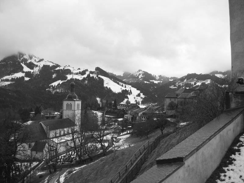 Gruyeres is an old town with a nice castle, it is a trip worth. The weather was really bad. It rained up to 2000m and so we couldn't go on a ski tour. Gruyeres is about 70 km away from Lausanne.