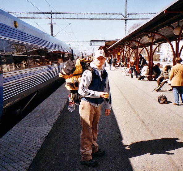 We jumped out of the train and looked around to find something which would lead us to the track but there wasn't anything. Even the people of the town didn't know where we should go. After one hour in Katrineholm and a 5 km walk on a big road we reached the forest with the track.