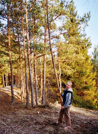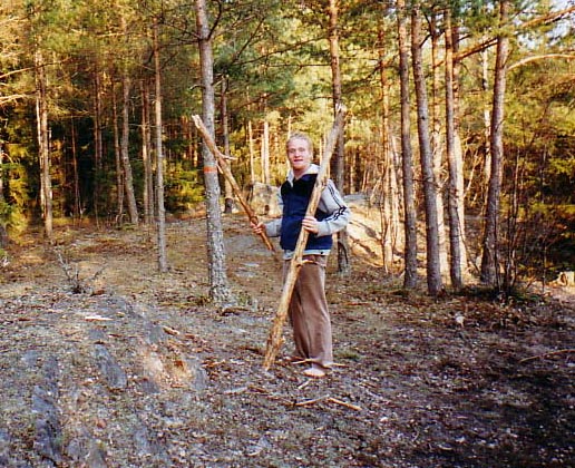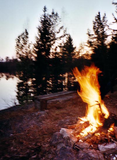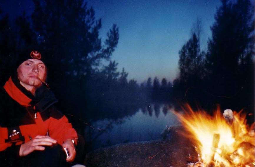 We knew that it might be cold tonight and what do you do if it is cold: A fire. Well, it makes also a lot of fun to have a fire outside in the nature and enjoy that. If you want to have a campfire you need wood. This isn't a problem in Sweden, there are shitloads. A little problem was the length of the wood, we didn't brought a motor saw and so we developed our own "cutting smaller technology". This technology was simple: get some dry old dead wood out of the forest, lift it up and throw it down.