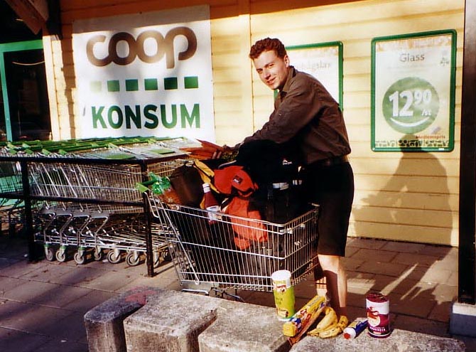 Our first destination in Krokek was the supermarket. There we bought a lot of food. We stored all the stuff in our backpacks and asked people of the town where the next camping ground is. The people told us that it is only about a quarter of a hour, well, we walked at least one more our ...