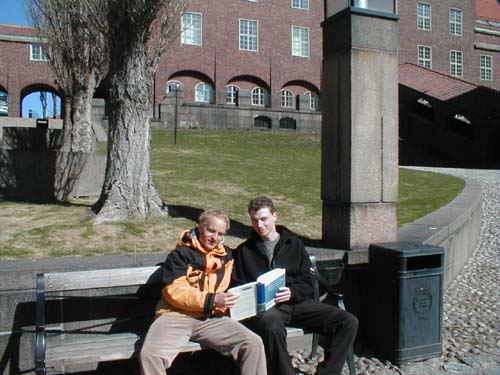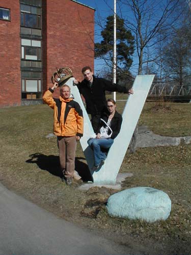 We stood in front of the sign for the civil engineering department of the KTH. V is for vatten, which means water and something else, but I forgot it (I guess it was waste, but I am not sure).