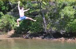 | das war echt ein Paradies | da nimmt man anlauf und springt mit einem Seil ins Wasser |
