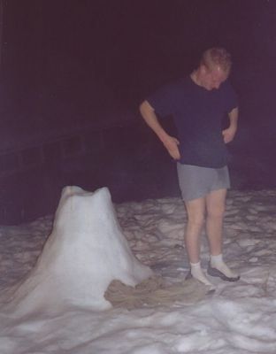 We played funy games. One one brick was written that you have to do a snowangel. I was unlucky and got this brick. I thought I don't want to have a wet trousers and so I took them off.