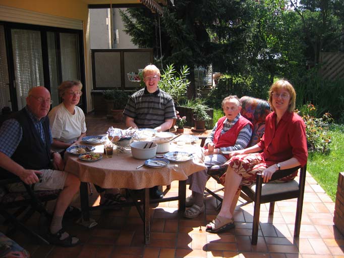 I visited my parents and my grand mom. We had a great meal and sat on the balcony. The next day I went looked for my grand so my parents could relax.
