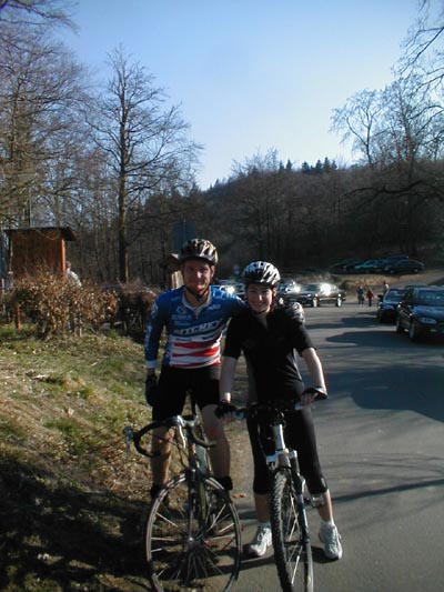 Just before I left my flat I gave Werner a call. He is also living in Darmstadt. We used to do a lot of rides in Offenbach. He told me that he will go to frankenstein as well with his girlfriend and two mountain bikes. Fortunately we met us on the top of the mountain.