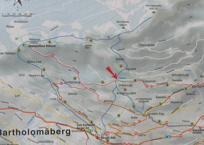 we hiked along the blue line, tried to get up to Wannaköpfle but turned around at Montenou