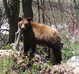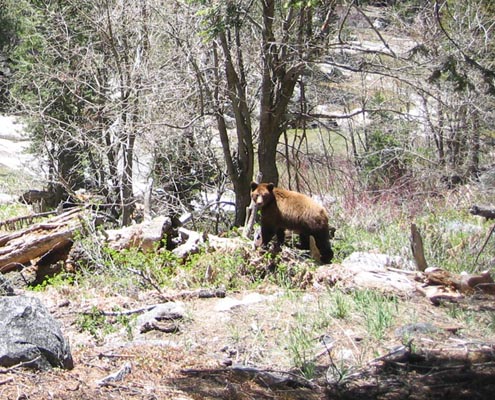 The next day we slept long and decided to go to the Topokah waterfalls. After half an hour Seppel was almost walking into a bear (blackbear). He was maybe 1.5 meters next to him. The bear noticed us first and was shier than we were and ran away! We were surprised as well (for sure) but it turned out that the bear was a really nice young "cuddelbaer"! We guess it was his first year without his mum. Here he is: