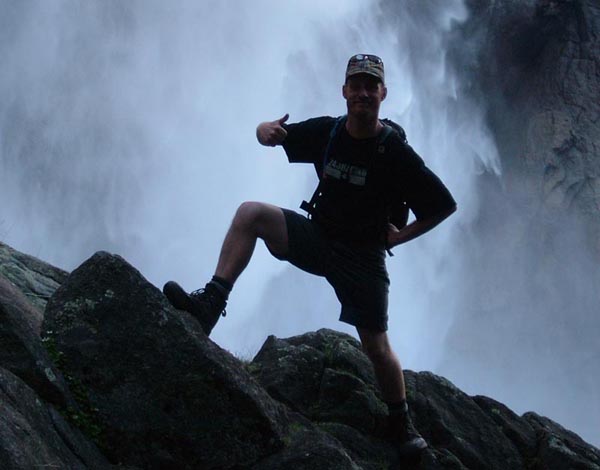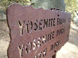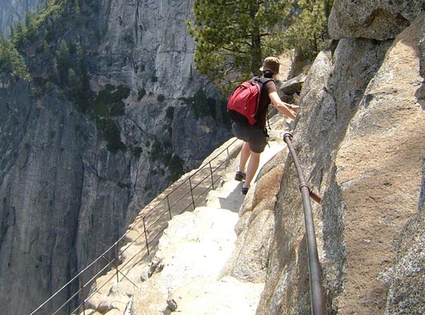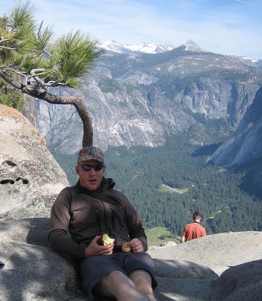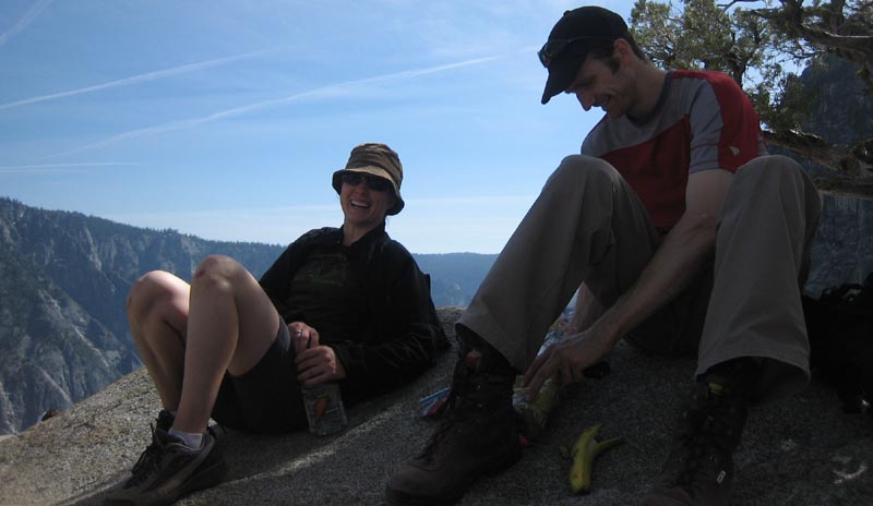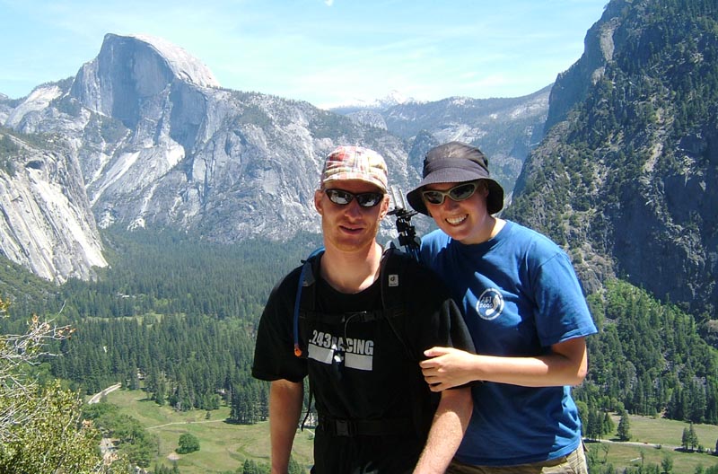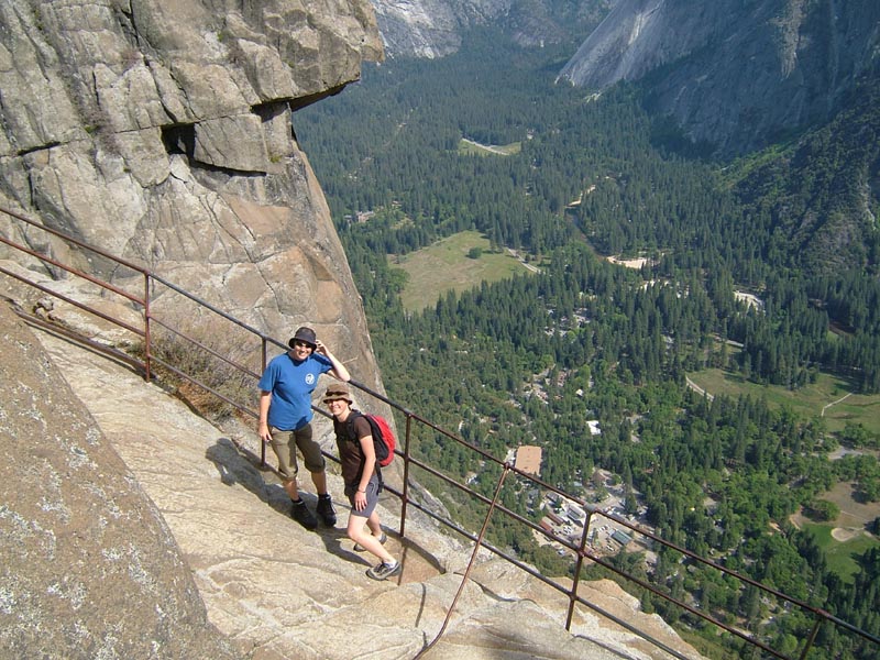 View down to the Yosemite valley from the top of the Yosemite Falls, Terri and me.