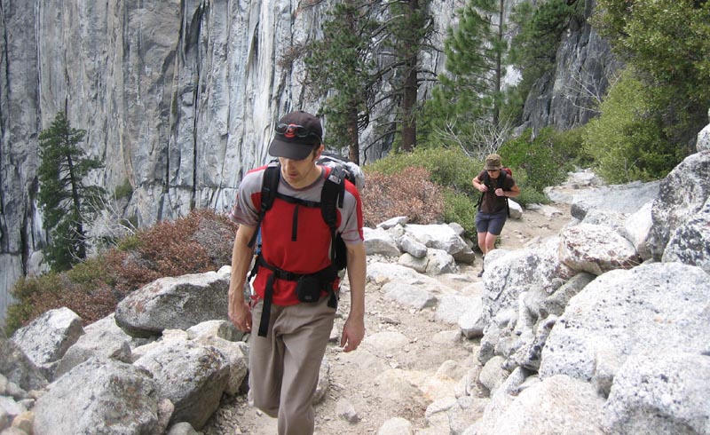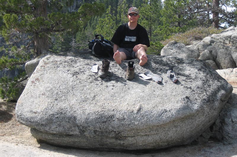On the first plateau! The rock in the background (on the left) is half dome, where we hiked the day after. More in the next part...
