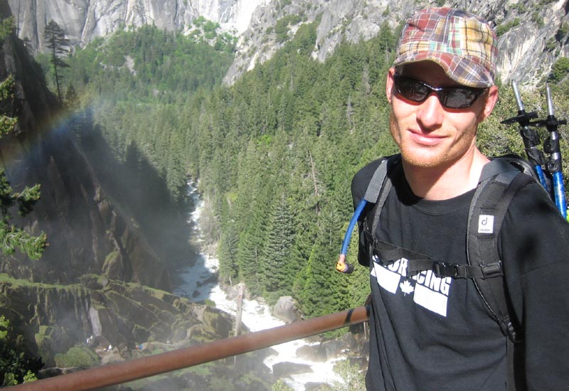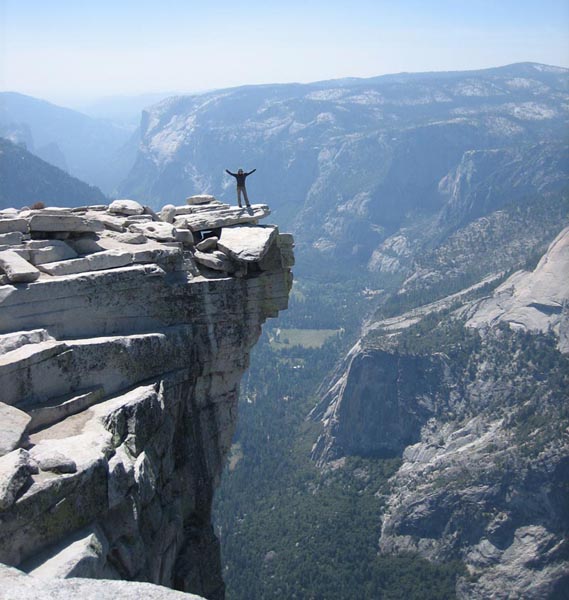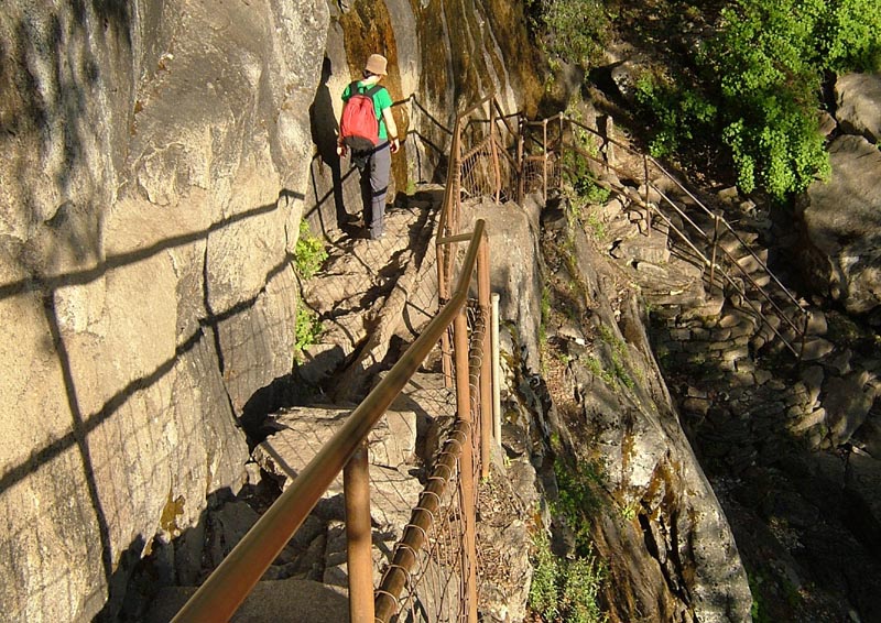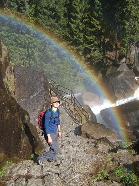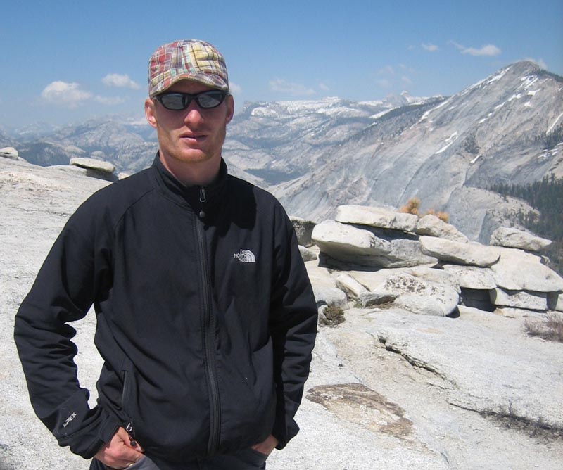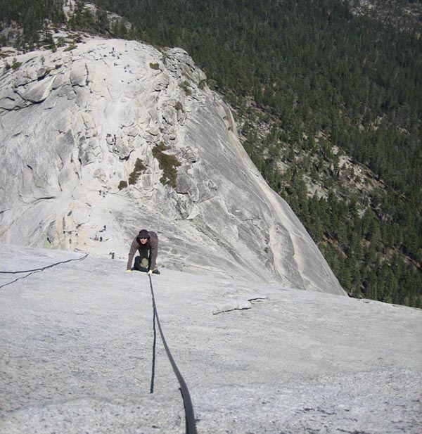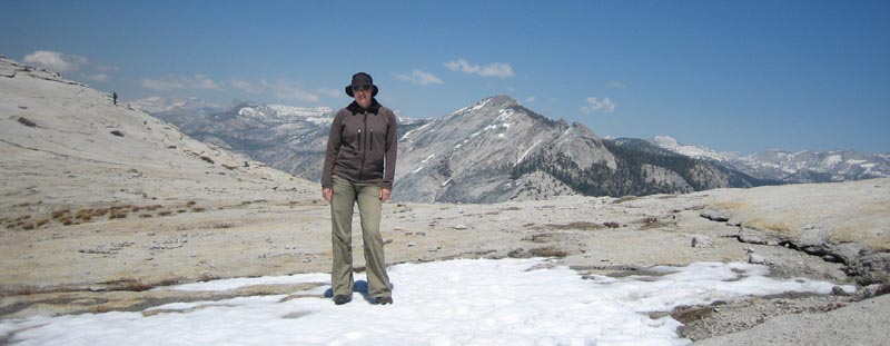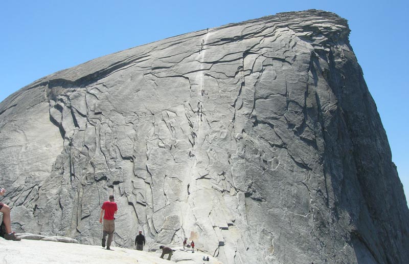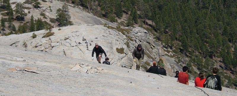 Being on quarter dome - we checked Half Dome although it was officially closed. There were cables lying around but no real trail was prepared to get up on the rock. After some discussions, Paul, Seppel, and me, we decided to climb up on the top. Terri waited with our bags and lots of hungry squirrels...