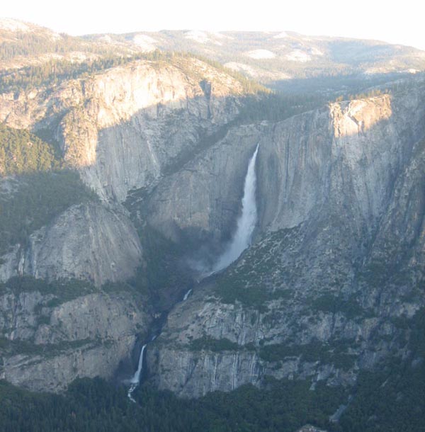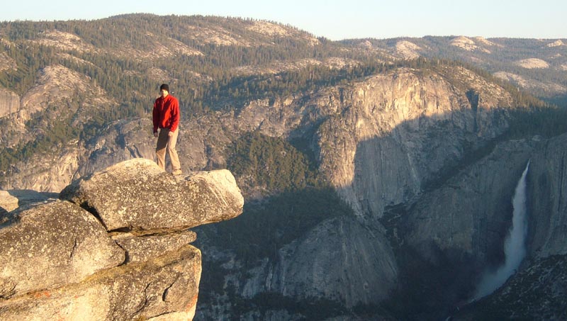 Paul (trying to copy me from the day before) and the Yosemite Falls on the right.