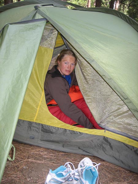 After that we slept for another hour or two before we had to leave the campground. Me, just getting up...