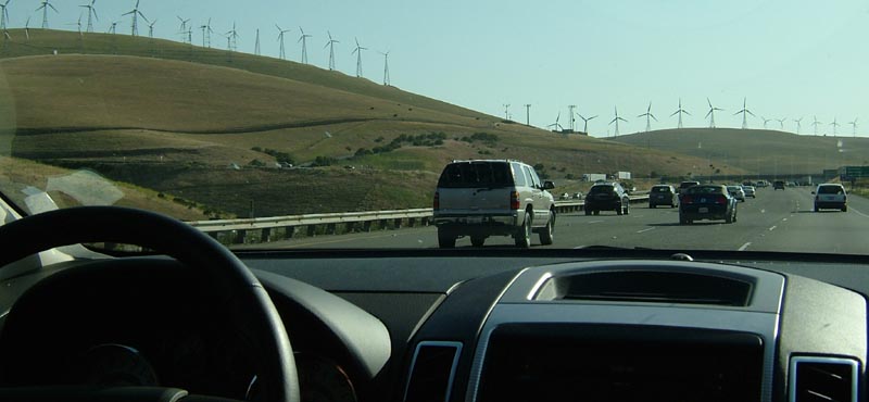 On the highway close to San Francisco, we passed lots of wind turbines. Paul and Terri were zealous!