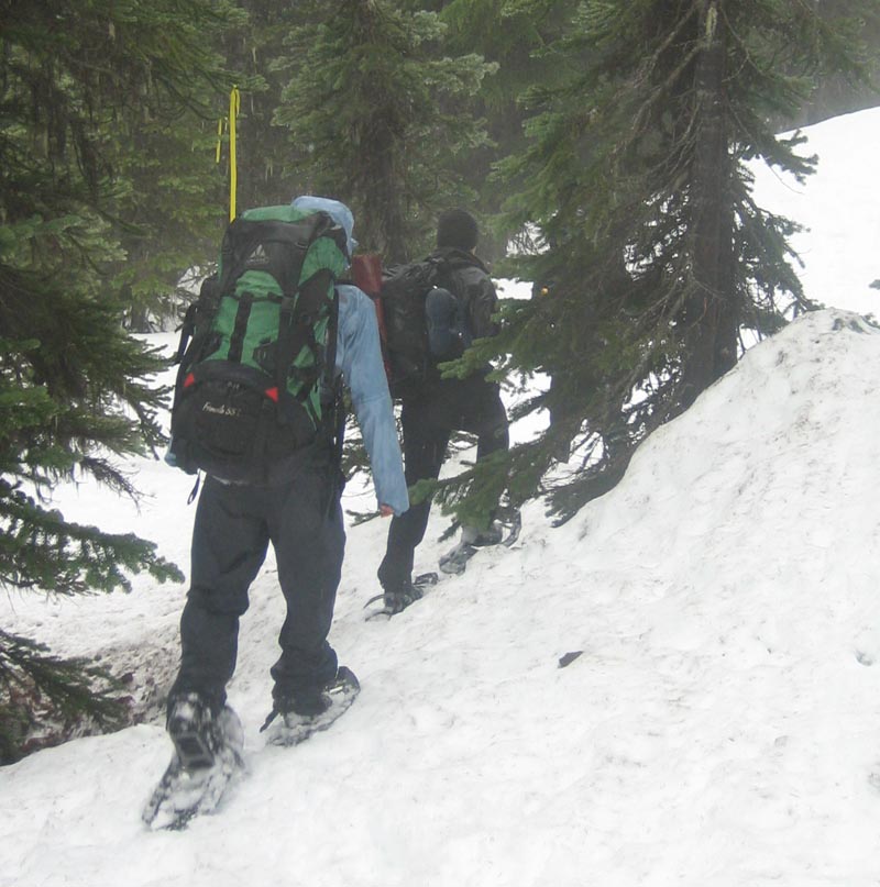 Seppel built stairs into the snow so that we could get down easier because of the steepness.