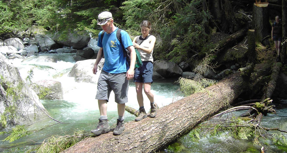 Seppel, helping Anna to cross a log. This is also the point where we decided to turn around.