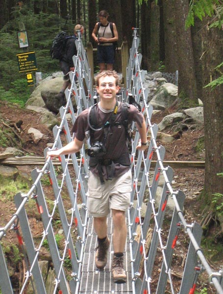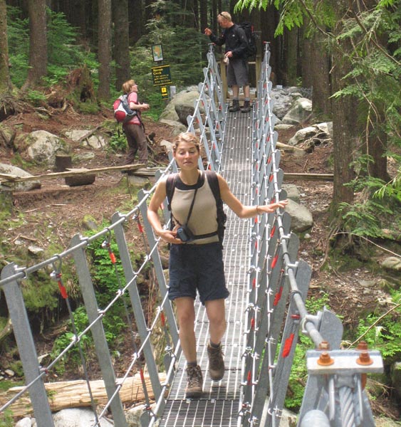 Marc crossing the bridge. Anna and Seppel are in the background.