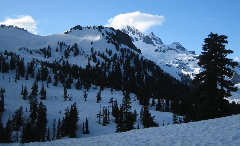 This is the view from the hut towards Mt. Atwell / Mt. Garibaldi (~2678m) on