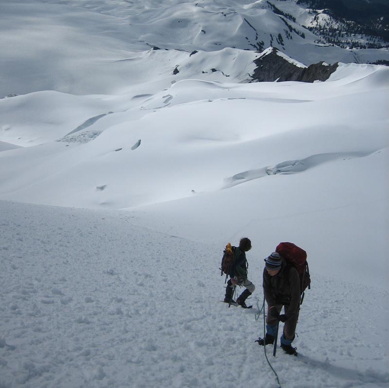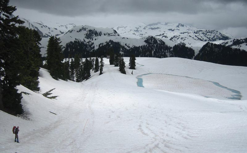 Unfortunately we didn't take many pictures in between. We made it over the ridge from Diamond Head towards Mt. Atwell. This is already close to the top of Mt. Garibaldi, from the East, behind Mt. Atwell.