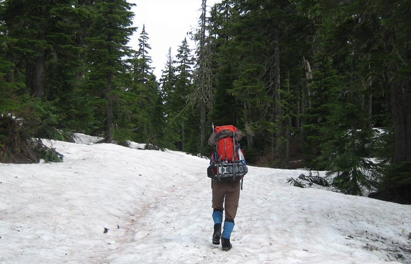 We hit the snow after a few meters of hiking. We knew that the hut was supposed to be covered in snow up to 4m!