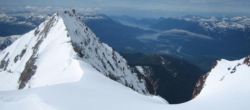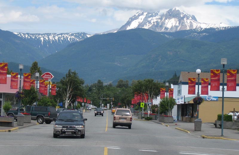 View from the town centre in Squamish towards Mt. Atwell / Mt. Garibaldi.