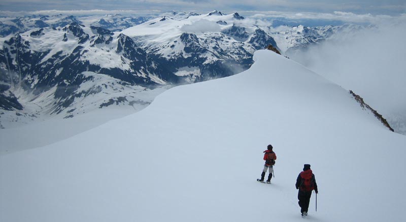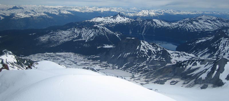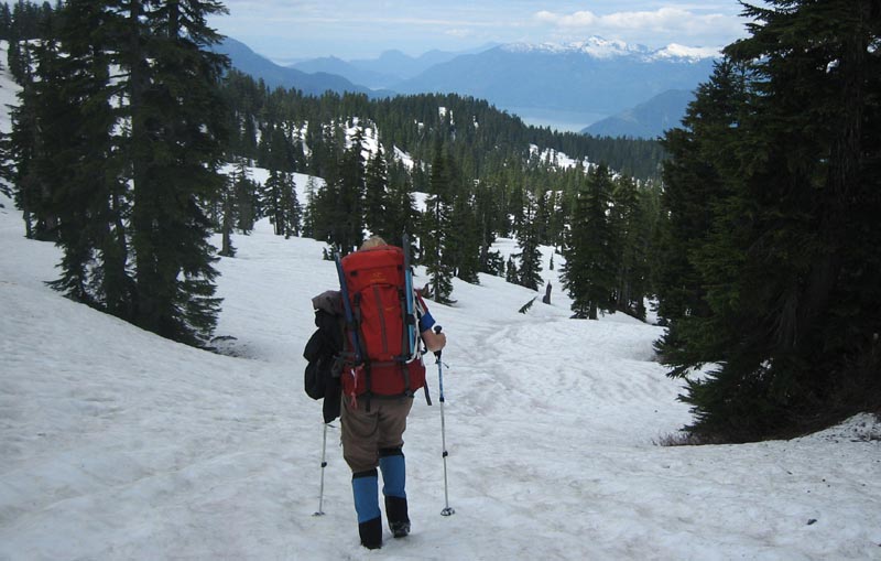 Some time later, half way down: After the steep section, Martin said good bye - he is way faster than we are and he had to hike all the way back to the car. The snow was suddenly really slushy and it was hard work on the top to move without snowshoes (we had crampons with us). After we made it back to Mt. Atwell we had a big break because Seppel was starving. We were just lucky that we made on the top - thanks Martin! We would have turned around without you...