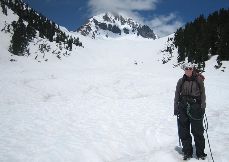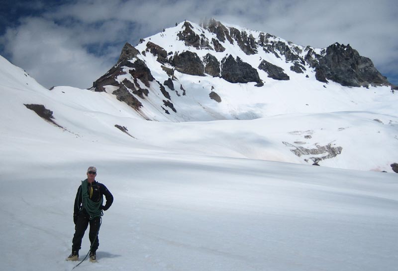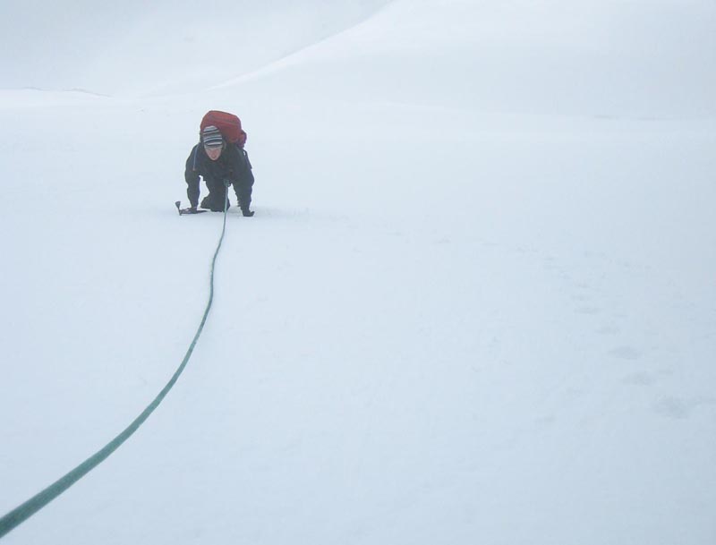 The steep section down to the Bergschrund - and it got cloudy on the top...