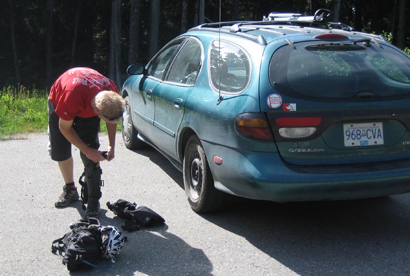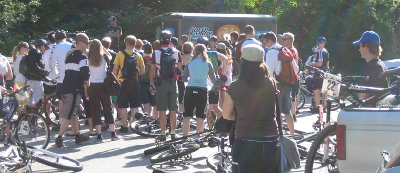 Getting prepared for the race at the start, after getting a ride up on Seymour Mountain.