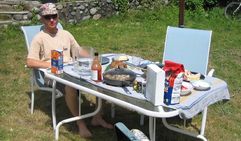 Having breakfast the next morning (at 2pm), after Arnaud's farewell party.