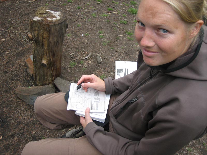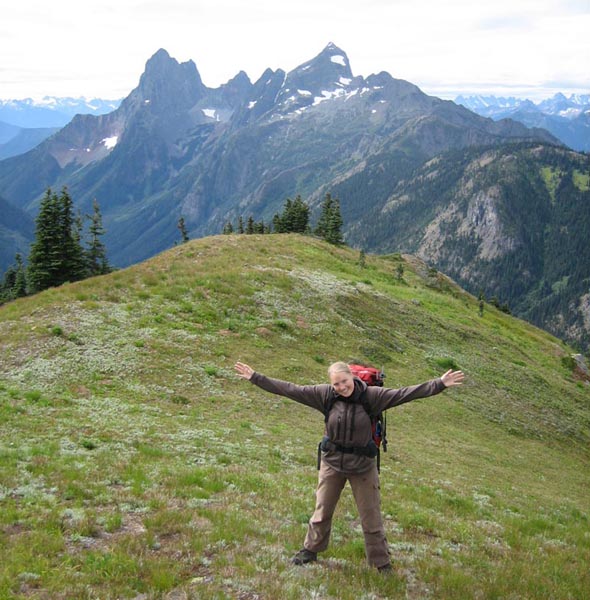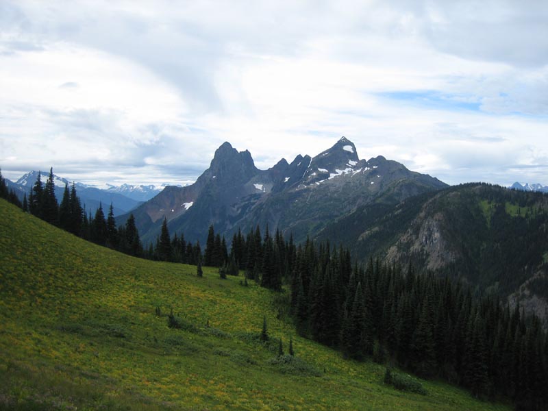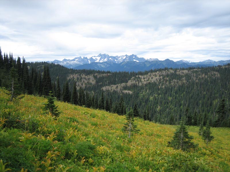 Close to the top of Mt Hozameen - where we turned around. Can you see the line on the left mountain? That is the US border!
