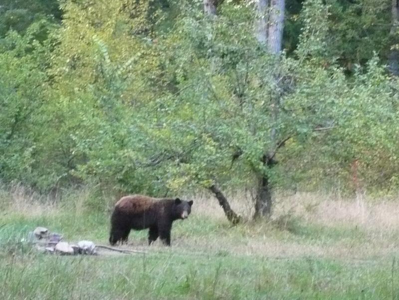 Since he liked it so much the whole family came around and all of them climbed the tree to have dinner (the second black dot is a cub, there was another cub but it was difficult to get a picture of it).
