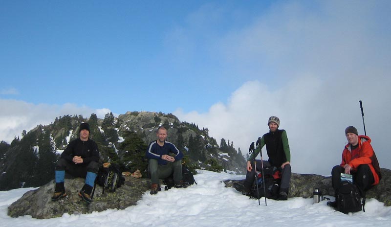 having a rest on the second peak, me, Bob, Sylvain and Chris