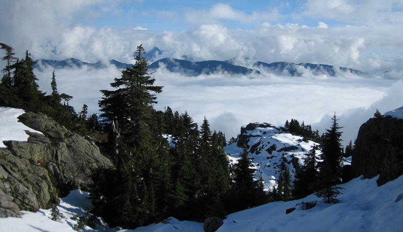 Just around the corner from our place in North Vancouver is Mt. Seymour. Mt. Seymour belongs to the North Shore Mountains. It is quite steep and quite high. The parking lot is on around 1000m, Mt. Seymour is on a bit more than 1400m.