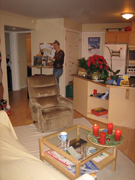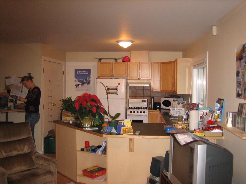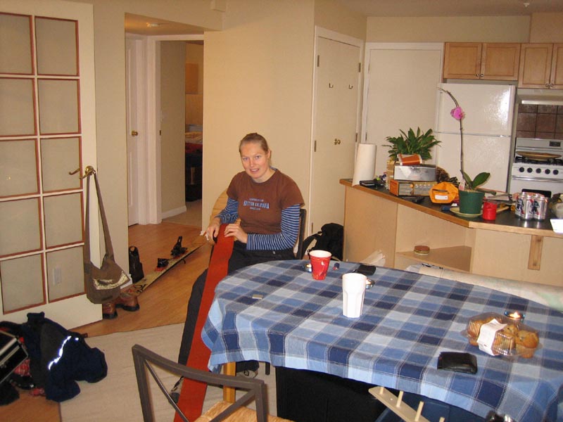 Well, it is already a month ago that we moved and we finally found the time to put some pictures on our webpage. It is a two bedroom place: one sleeping room, one gear/guest room and a big living room with kitchen. I think most of the pictures don't need any further explanation.