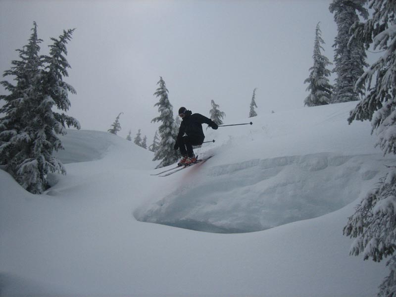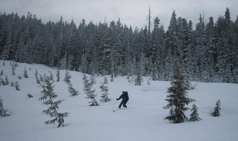 Malcolm skiing through the trees