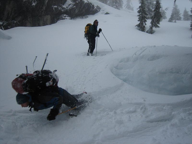 Malcolm having trouble with his telemark skis