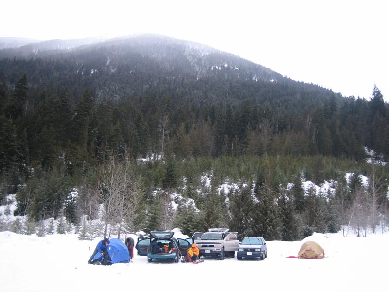 At the parking lot. We left thursday night and stayed in tents or in the car.