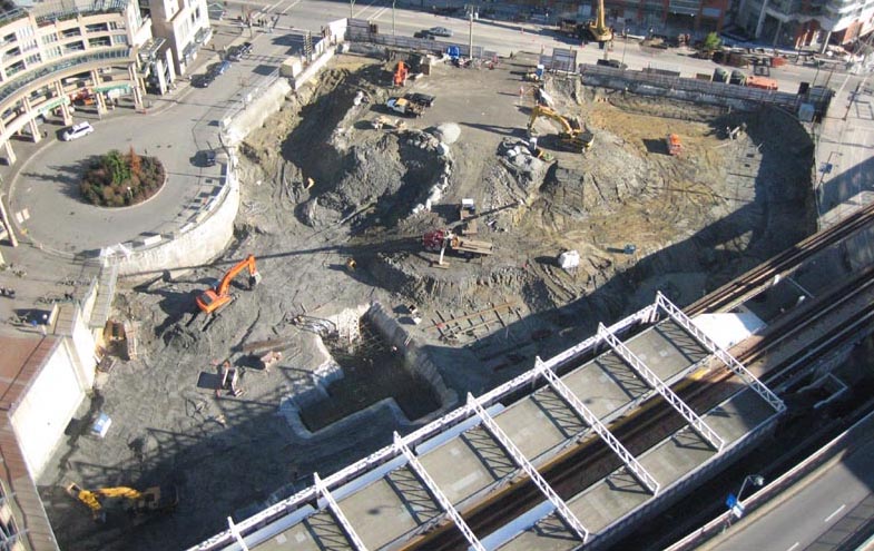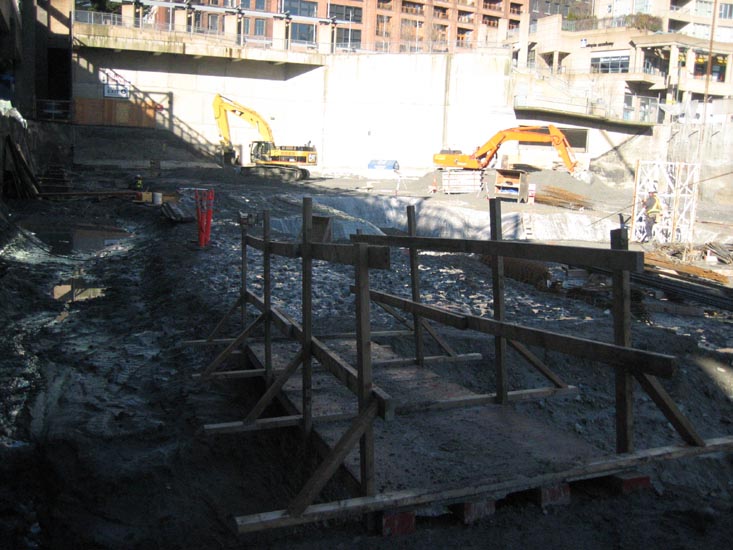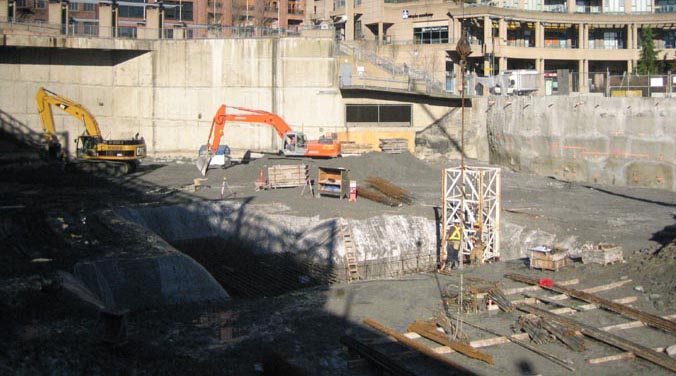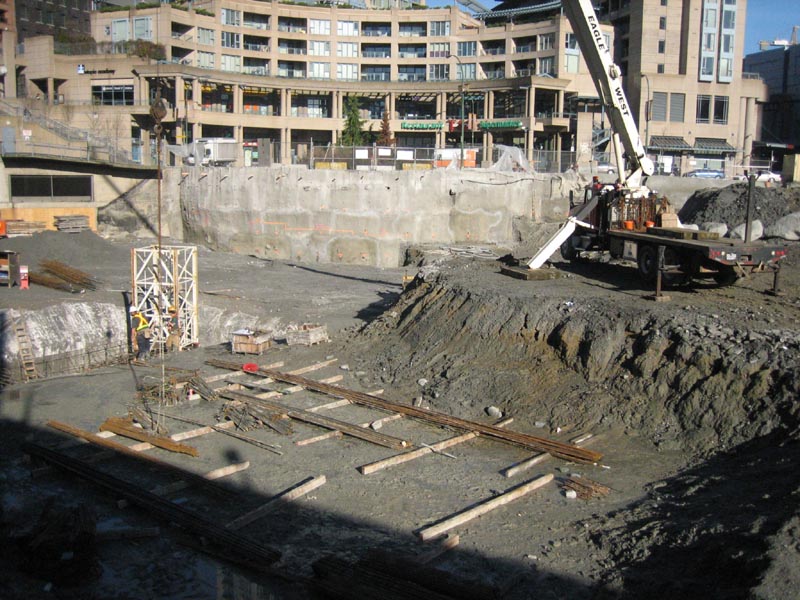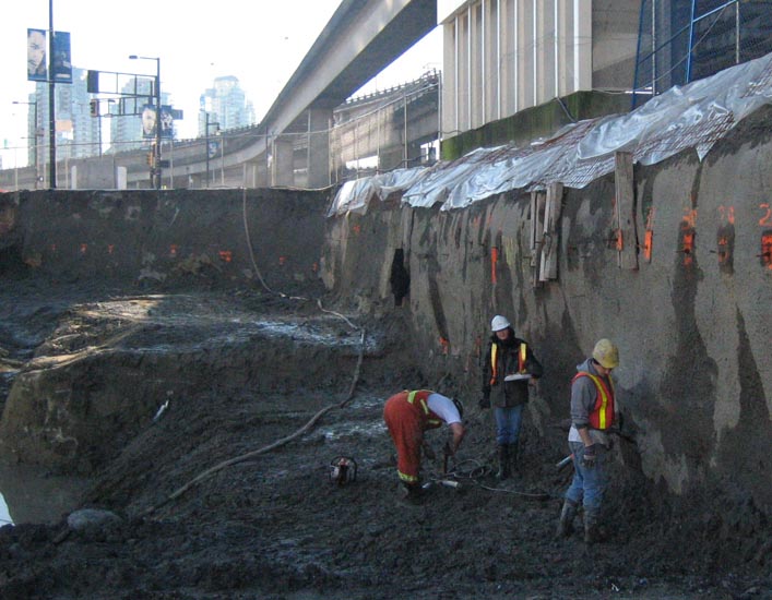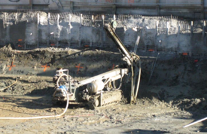 holes are drilled into the sides to stabilize the walls. later anchors are placed and tensioned